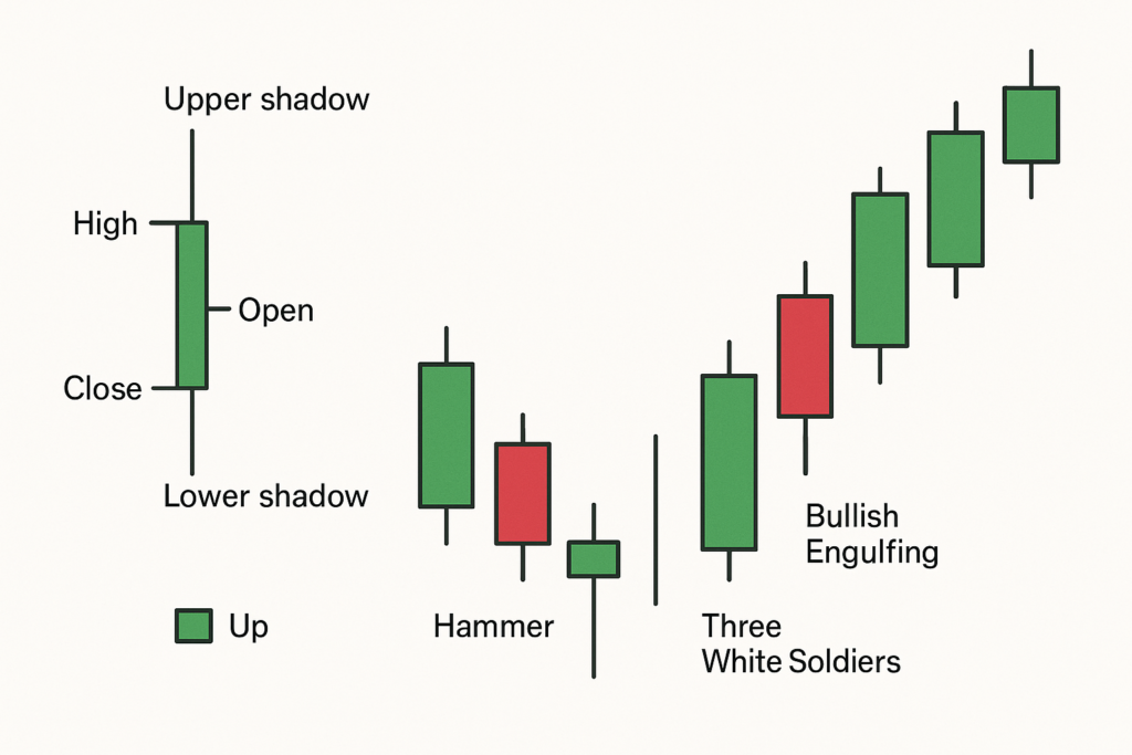 Antes de tudo, o gráfico de velas, conhecido como candlestick, é uma das ferramentas mais populares da análise técnica. Desse modo, é utilizado por traders de ações, forex e criptomoedas, esse tipo de gráfico mostra de forma visual o comportamento dos preços em determinados períodos. Por isso, cada “vela” representa as quatro principais informações de uma negociação: abertura, fechamento, máxima e mínima. Além disso, com cores distintas, os candlesticks revelam tendências e padrões com potencial de reversão ou continuidade..